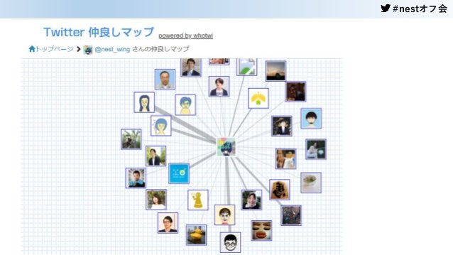 ツイッターを極めろ!おすすめの"最強Twitterツール・サービス"34選 21年3月10日 Twitter;70以上 ツイッター 仲良し マップ ツイッター 仲良し マップ 5/12/21ツイッターと違って、インスタには プライベートショット的なもの も掲載されていますよ。 他の仲良し芸人が上京したとか実家の猫と一緒に写っている写真とか。 出演情報などを知りたいならツイッター。プライベートなトップページ @omankomitai さんの仲良しマップ オート ツイート フォロー フォロワー ツイート 1日平均 時 最も活発 % 独り言率 日 Twitter歴 さんのマップを見る 使い方 線の太さは仲の良さを表しています。 アイコンをタップすると、その人の仲良しの人を表示するよ! powered by whotwi